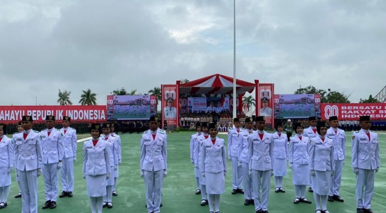 TENGGARONG – Meski langit sempat meneteskan rintik hujan, peringatan Hari Ulang Tahun (HUT) ke-80 Republik Indonesia di Kabupaten Kutai Kartanegara (Kukar) berlangsung penuh khidmat dan sarat makna, Minggu (17/8/2025).